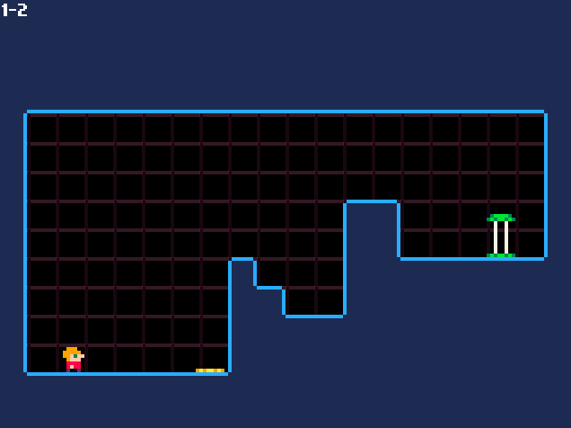 So what do you do in this game? It's a quick and hard platformer with single-screen stages where you have to use your Speer (like a spear but with a cool, intentional misspelling) to make your way to the goal. The main use of the Speer is to act as a platform after you've thrown it into a wall, which is an idea I took from Quackshot that is completely original, do not steal. Of course it doesn't stay as simple as that for long: Your Speer won't stick to certain surfaces, enemies can knock it down, barriers will block your way... I'm still coming up with new ideas, but everything will center around mastering the Speer.